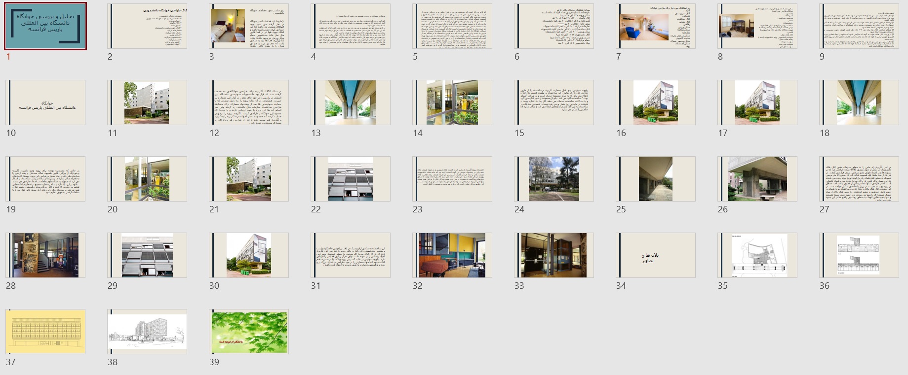 - نام محصول: پاورپوینت نقد و بررسی خوابگاه دانشگاه پاریس فرانسه،به همراه پلان ها و تصاویر