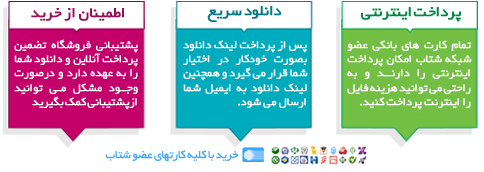 ۱- کلیک روی دکمه خرید و پرداخت ۲- ثبت ایمیل و مشخصات ۳- پرداخت مبلغ با کلیه کارتهای بانکی ۴- نمایش لینک دانلود فایل و ارسال یک نسخه به ایمیل شما